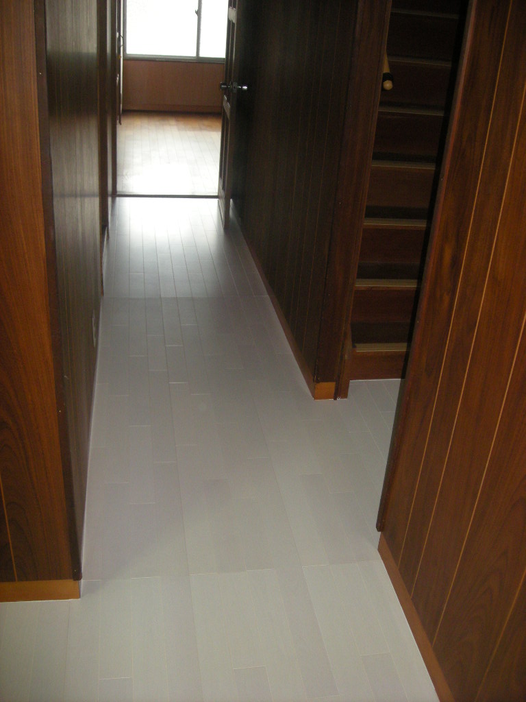 現在廊下廻りが大変暗いので、とにかく明るくしたいとの施主さんの希望でホワイト系のフロア材を張ることになりました。