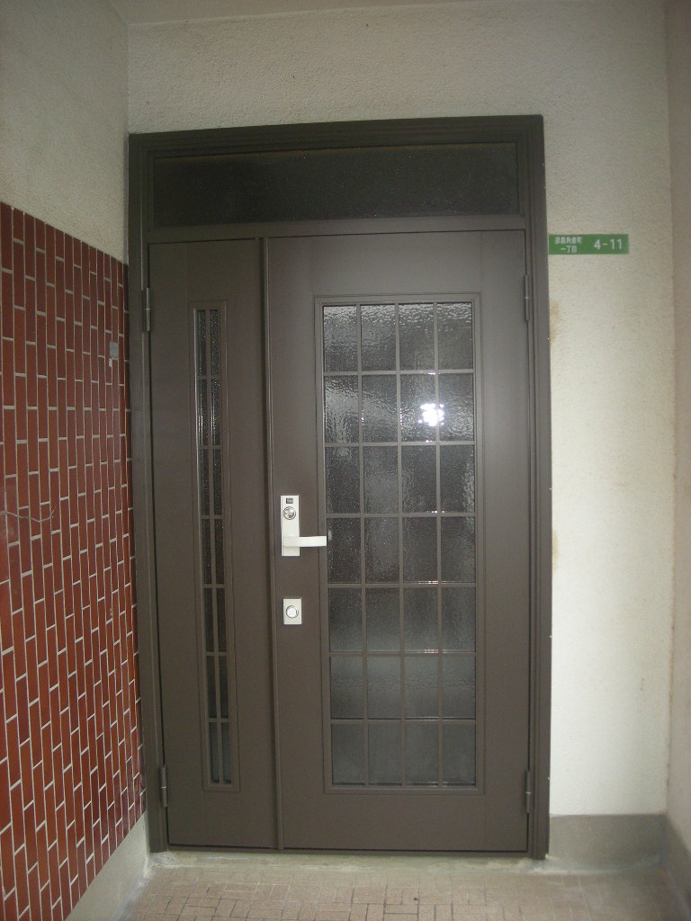工事前の玄関ドア(状態も良くないのと、とにかく玄関の中を明るくしたと言うことで明かりが良く入るタイプのドアに交換することになりました)!!