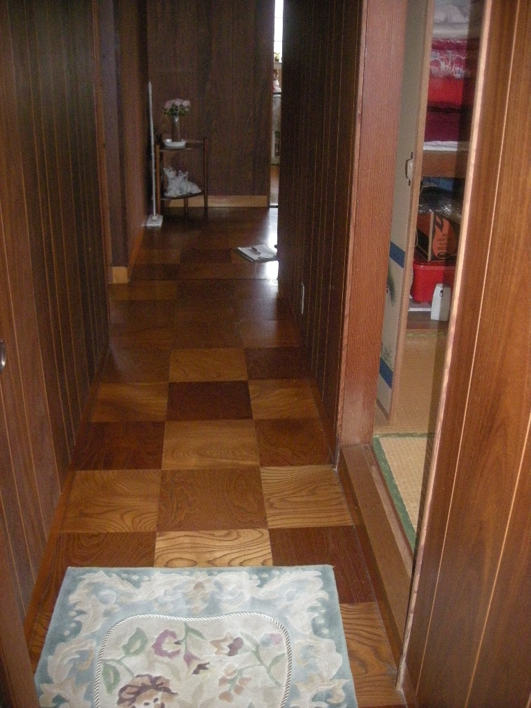 廊下廻り(このタイプのフロア材が年数が経つとよく、この様な状態になるようです)!!