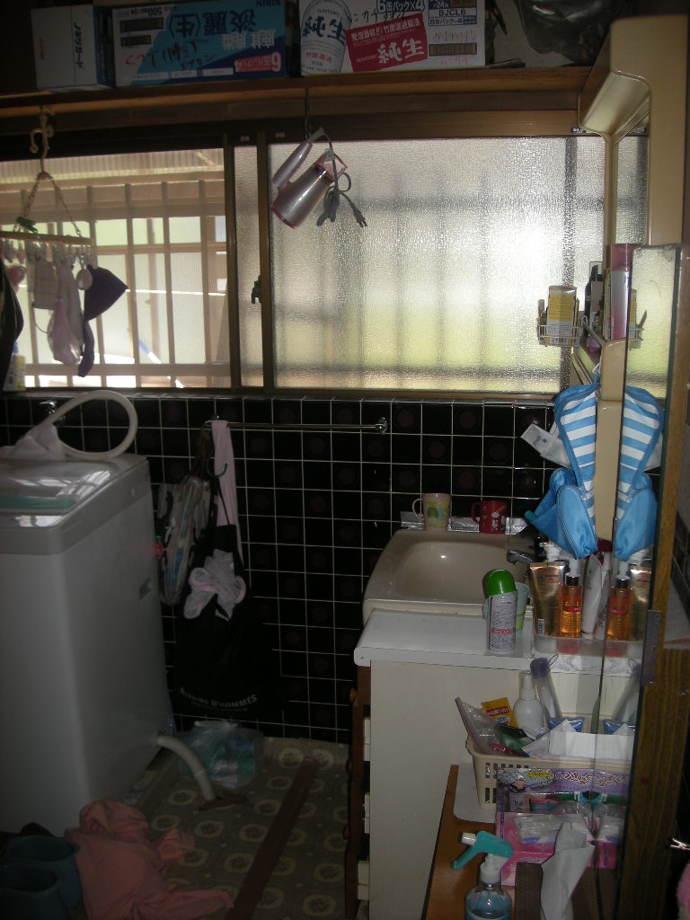 ①洗面化粧台交換(給水,給湯、排水管移設工事も同時に行います)。