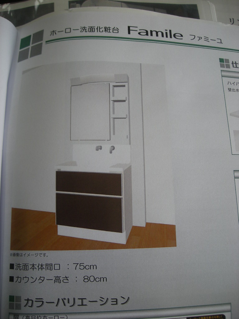 新しく設置する洗面化粧台(タカラホーロー洗面化粧台…ファミーユ75㎝)!!
