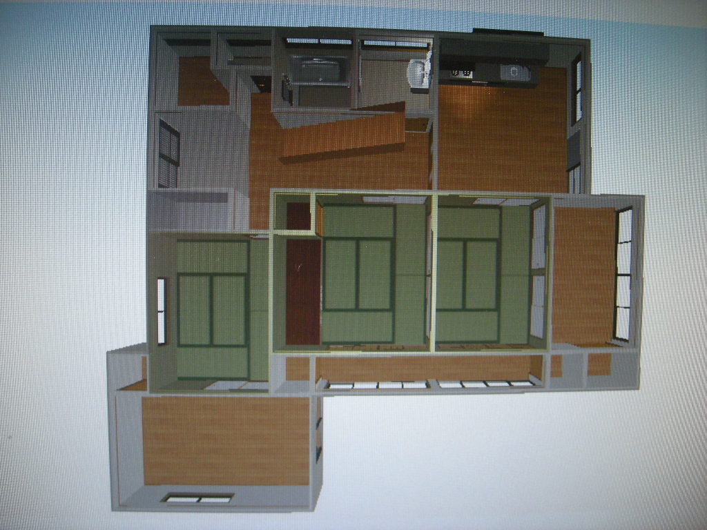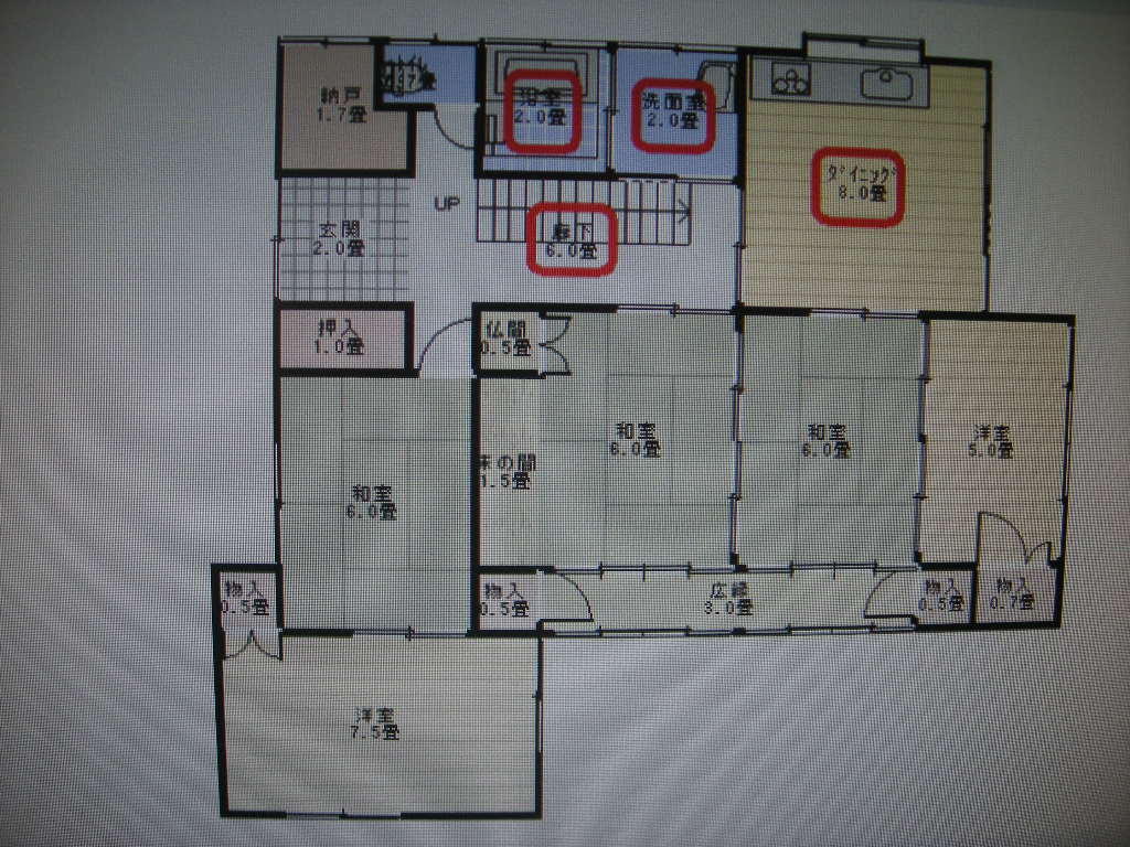 1階の平面図(赤線で囲った所を主に改装します)!!
