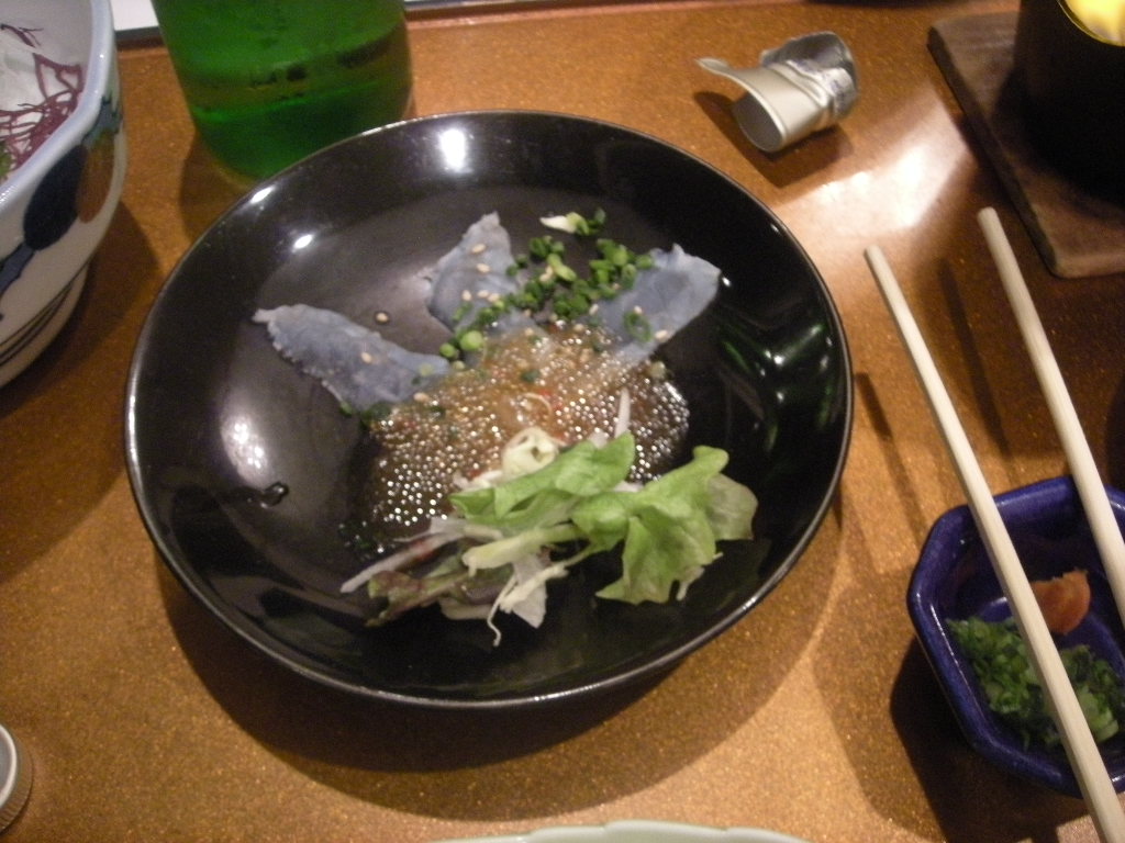 前菜(河豚梅香煮、河豚皮真丈、タラ子ソース掛け)!!