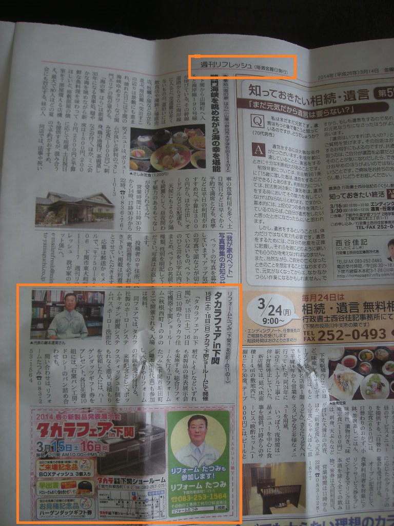 ◎3/14(金)「週刊リフレッシュ」にも、記事が掲載されますので見て下さい。