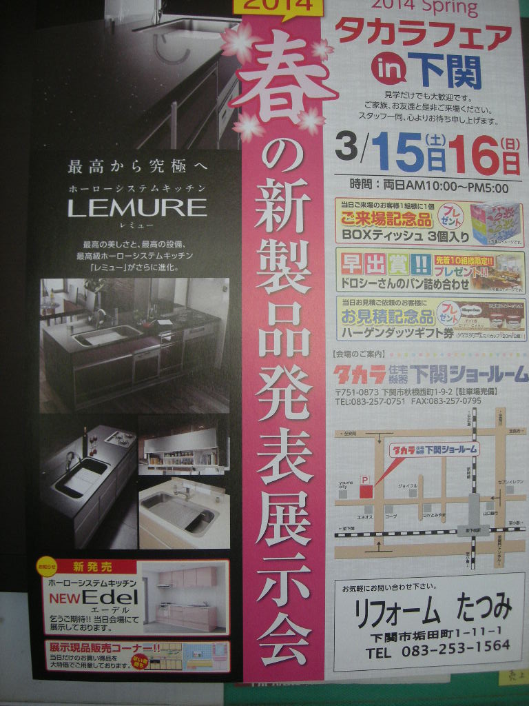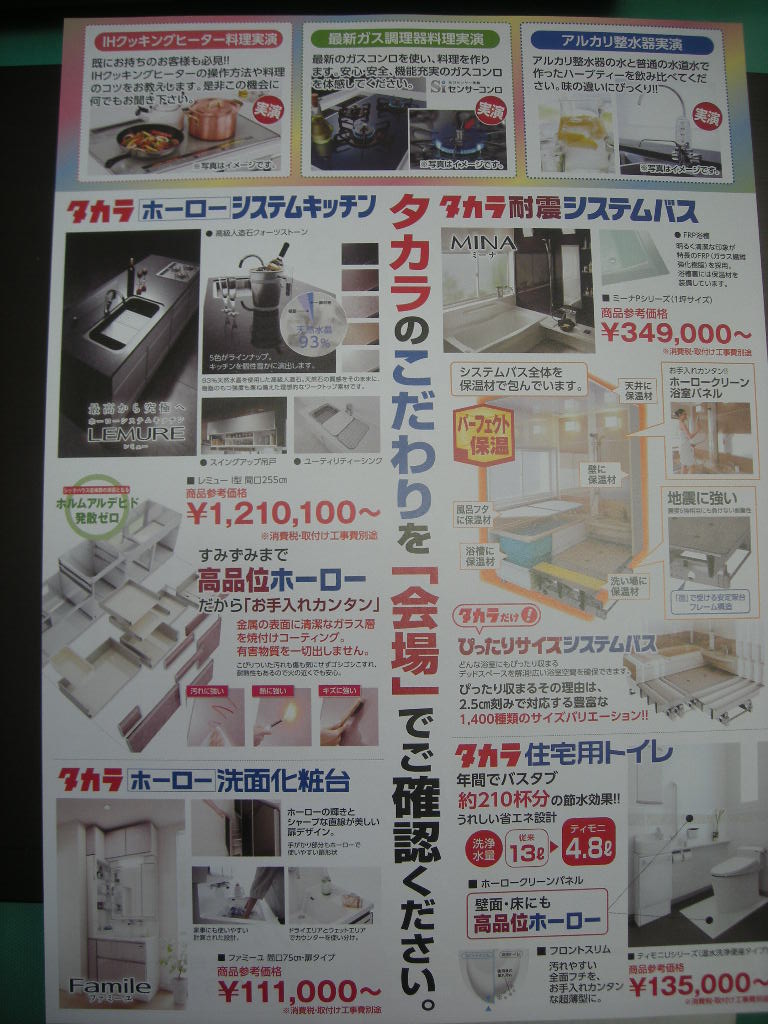 ◎今年も、「タカラさん」の下関ショールームにおいて、下記日程で、新製品の発表展示会を行います。