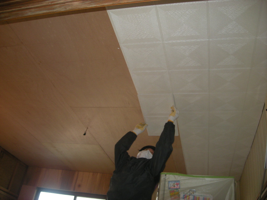*天井は新規に準不燃天井材(テックス)を張ります。