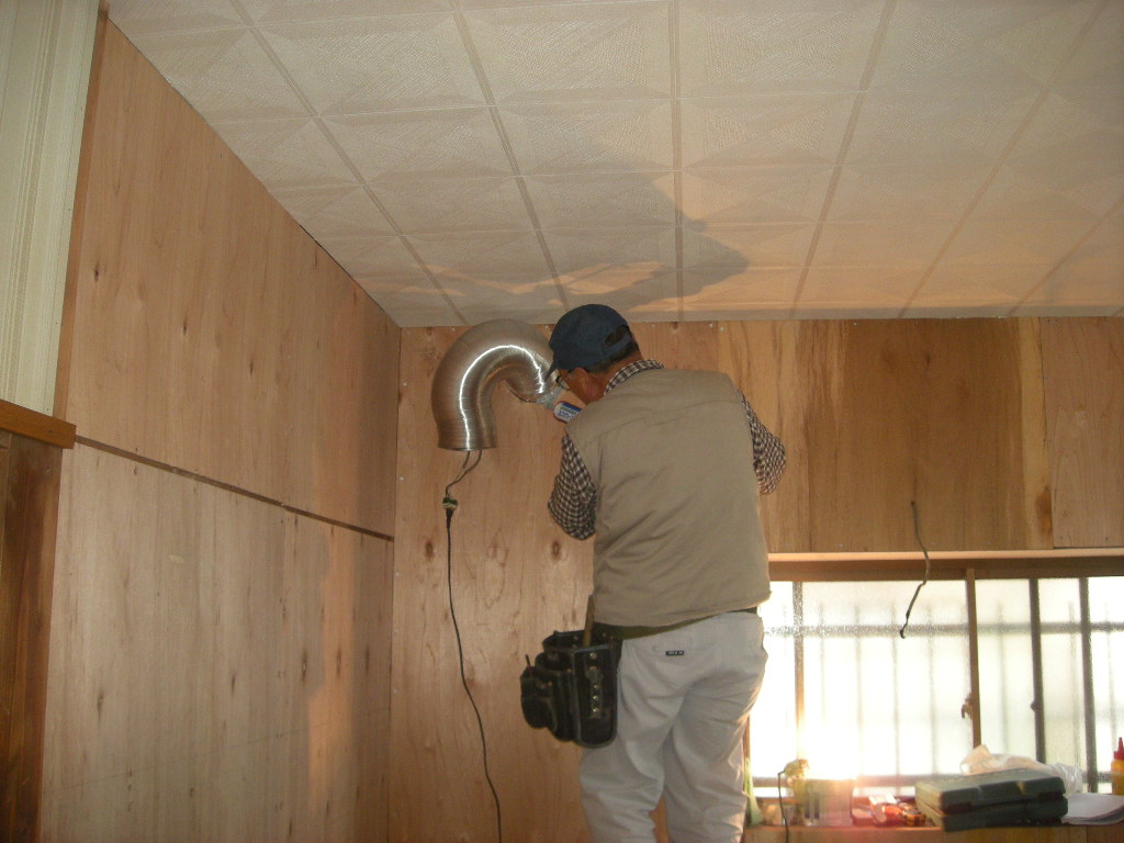 下地コンパネの施工が終わったら、換気ダクトを取付けます!!