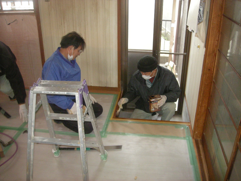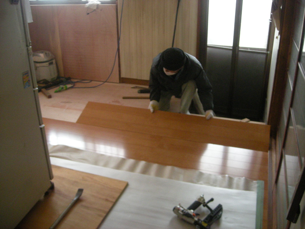 *床は既存の床材を解体,撤去後、新規のフロア材を張ります。