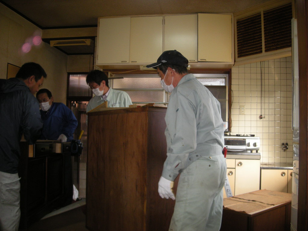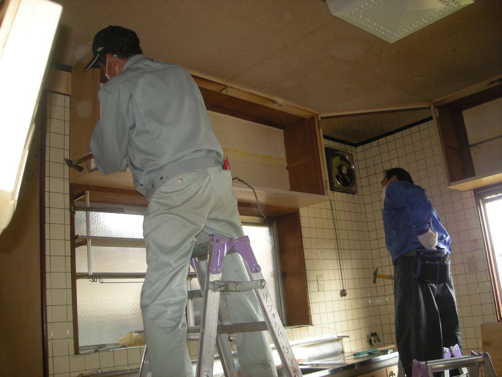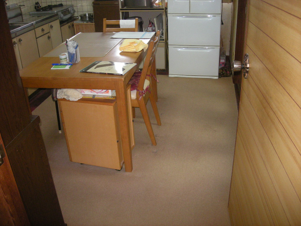 最初に台所にある食器棚等を別の部屋へ移動します!!