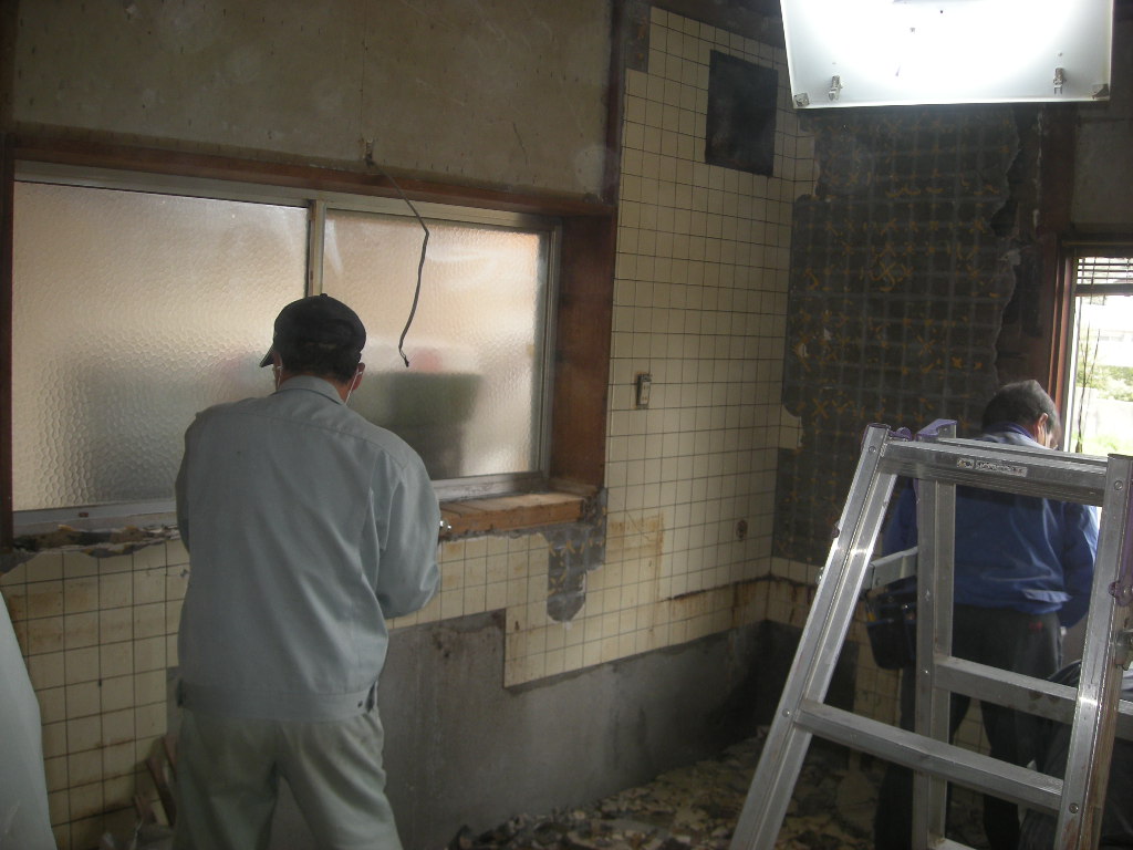 タイルを撤去後、下地のモルタルも解体,撤去しました!!