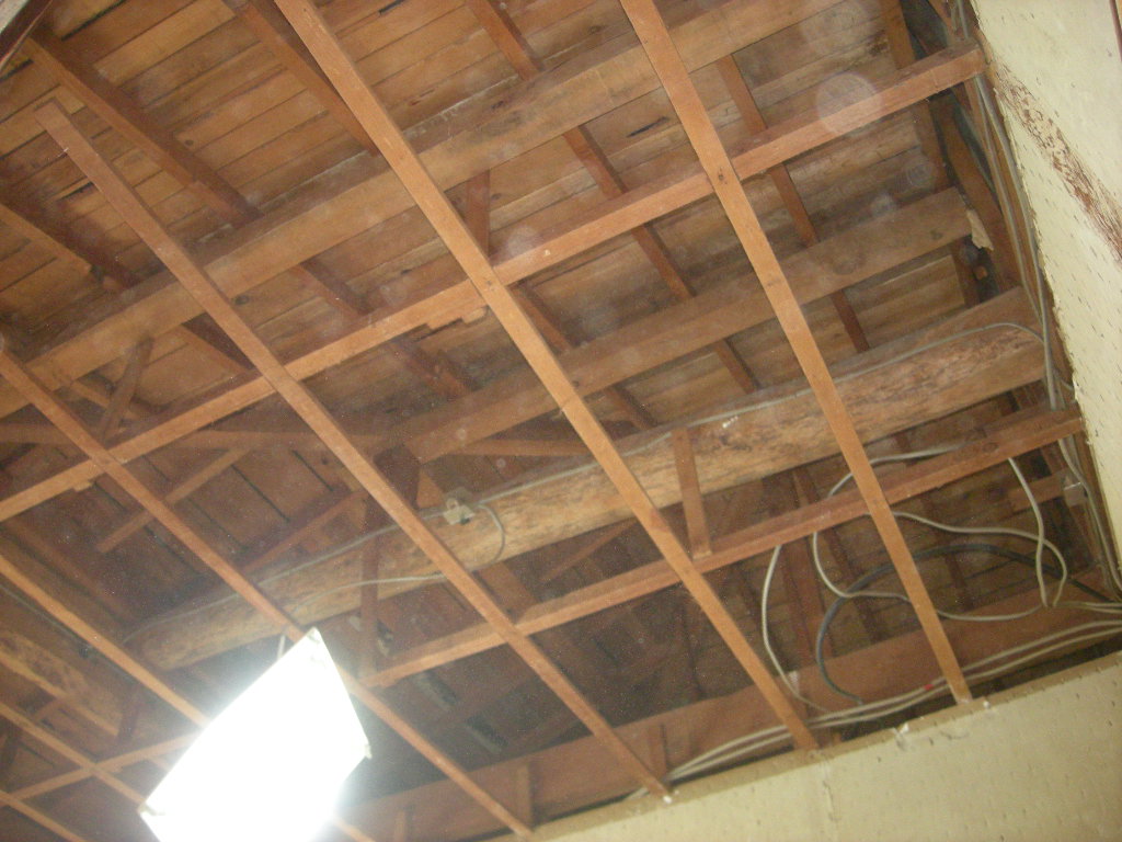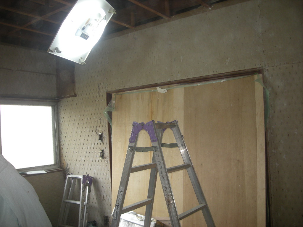 天井(解体、下地づくり後、準不燃天井材<テックス>を張り、照明器具も交換します!!