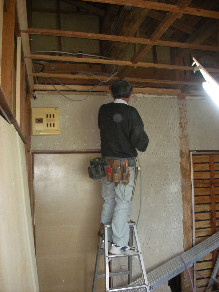 解体が終わった、この時点で電気屋さんが電気の配線の改修工事を行います!!