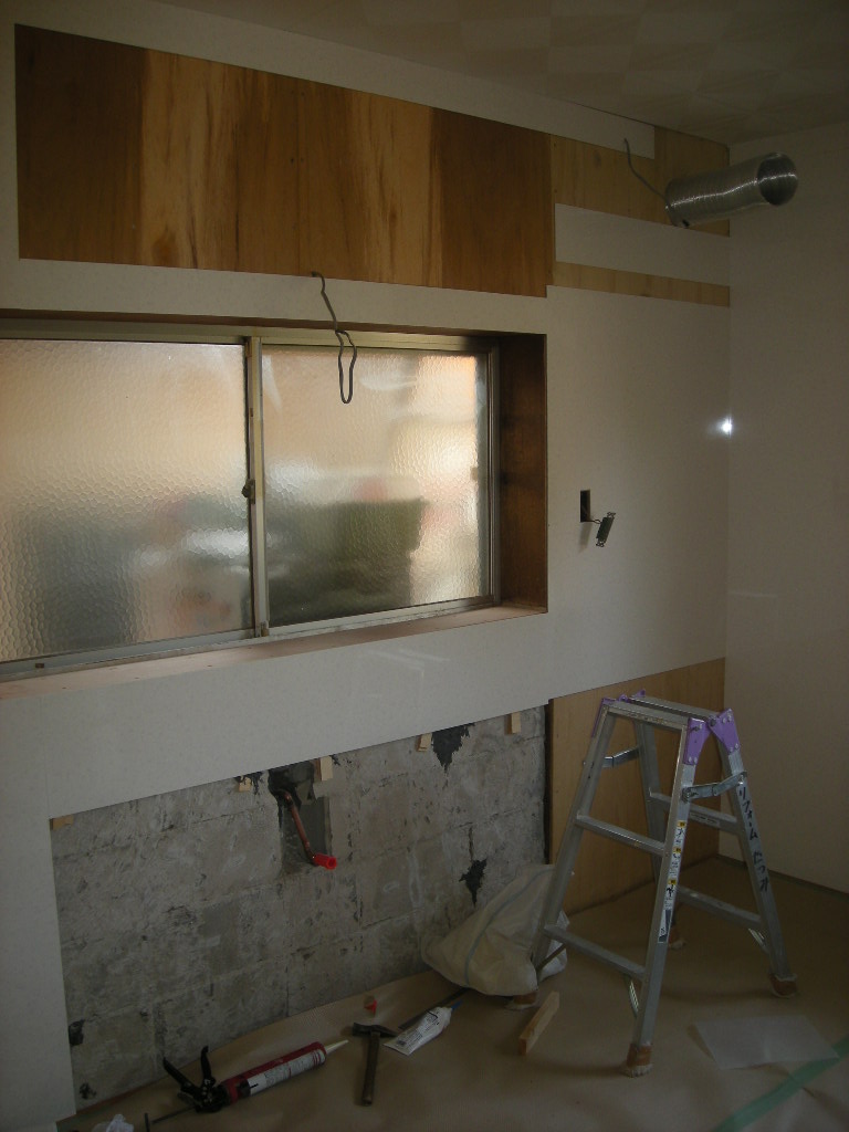 キッチン廻りもパネル下地となるコンパネを施工しました!!