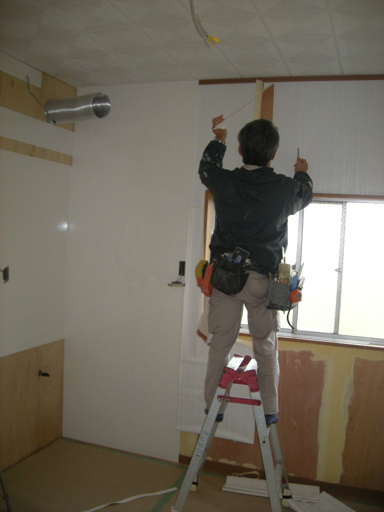 *大工関係の作業が終わったら、次はクロス屋さんが入り内装工事を行います。