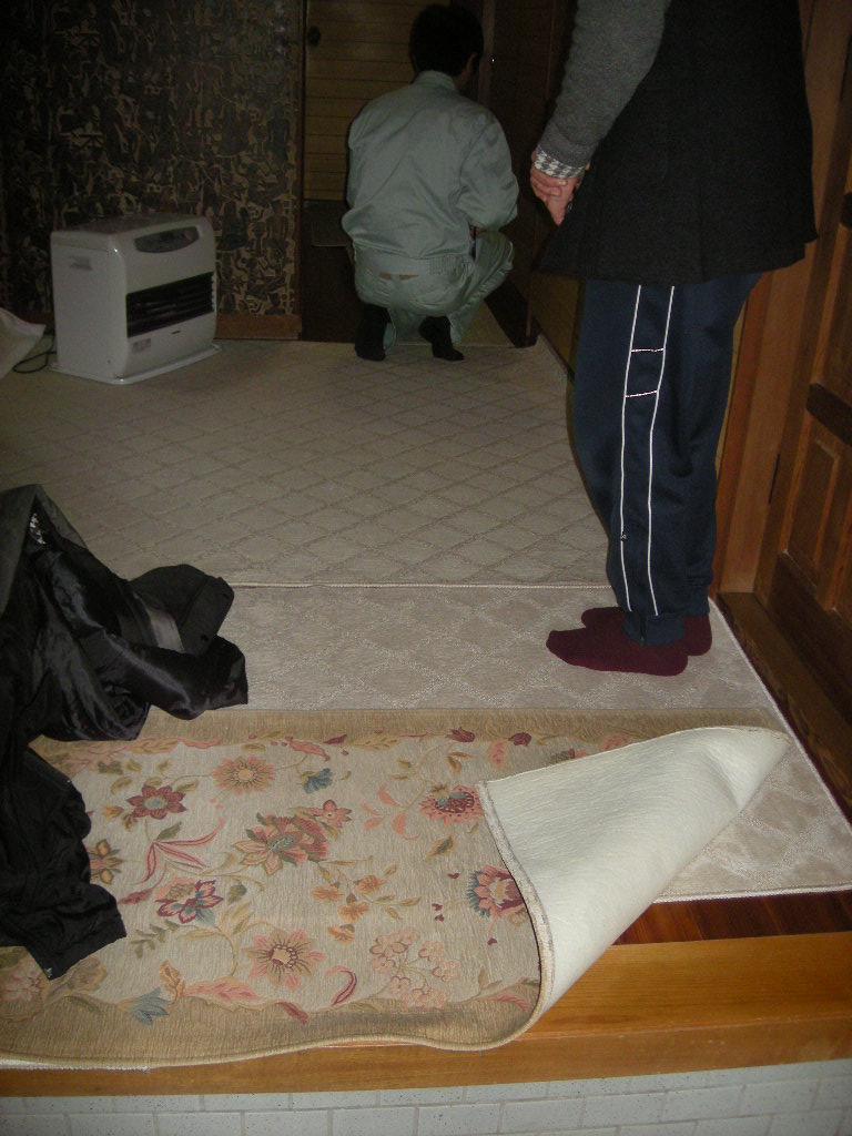 工事前の床の状態です(ジュウタンの下の床材がブカブカしていました)!!