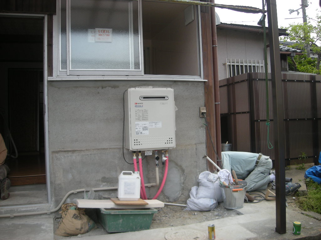 新しくガス給湯器を取付け、各配管の接続をします!!
