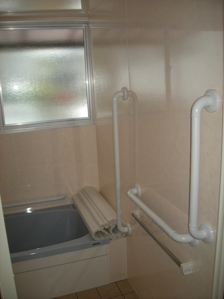 体の不自由な、ご両親が安全にお風呂の入れる様に施主さんと相談し、ご覧の様に手摺りを取付けました!!