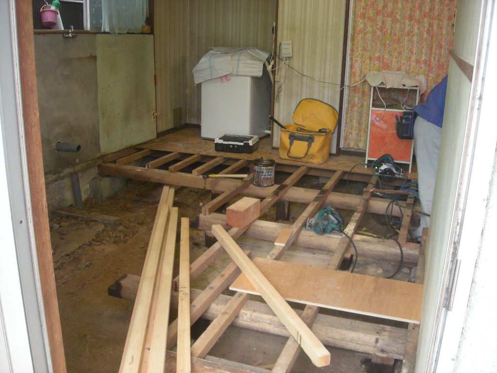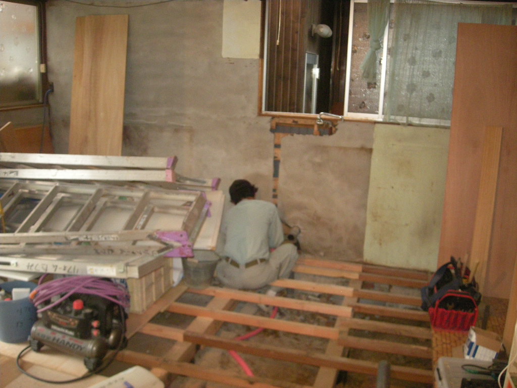 ・床はブカブカし状態が良くないので解体し、下地づくり後CFを張ります。