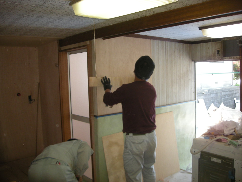壁廻りにはクロス下地となるベニヤを既存の上から施工して行きます!!