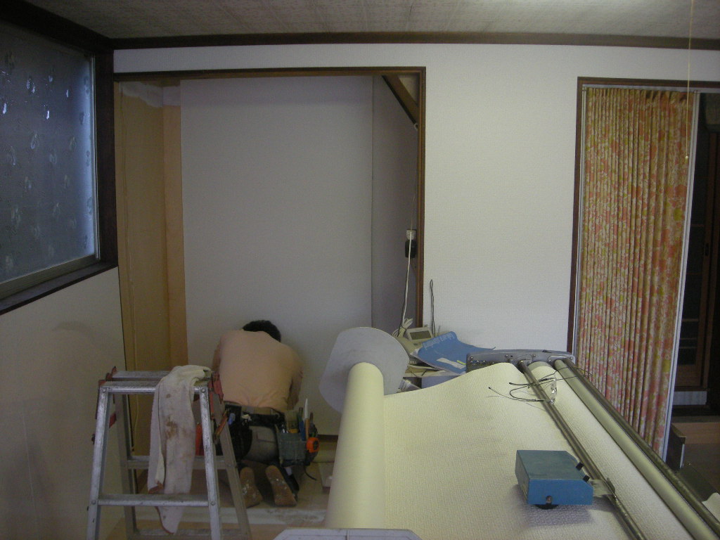 下地づくりが終わったら、クロス屋さんが壁廻りにクロスを張って行きます!!