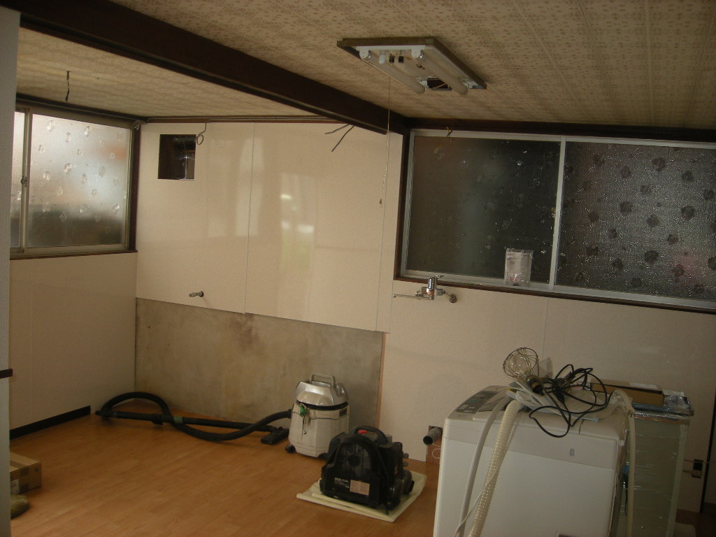 この時点で設備屋さんが、新規の流し台用の給排水管の移設工事をします!!