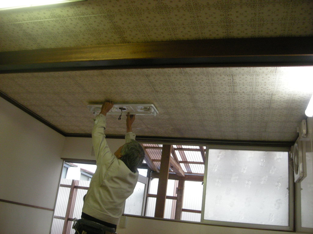 新しい換気扇を取付け、ガスコンロも据付け、以上で台所の改修工事の完成です