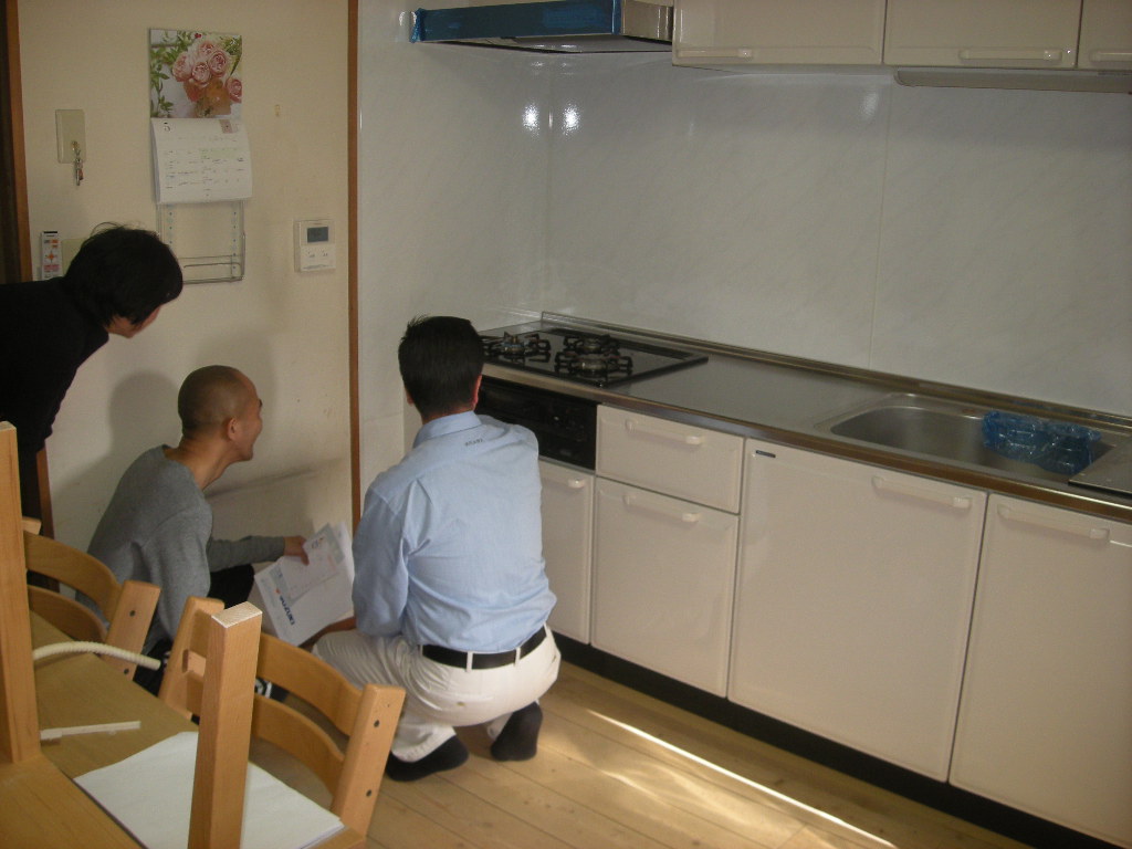 ガス屋さんが一時取り外していたコンロを再取付けし、施主さんに使用方法を説明します!!