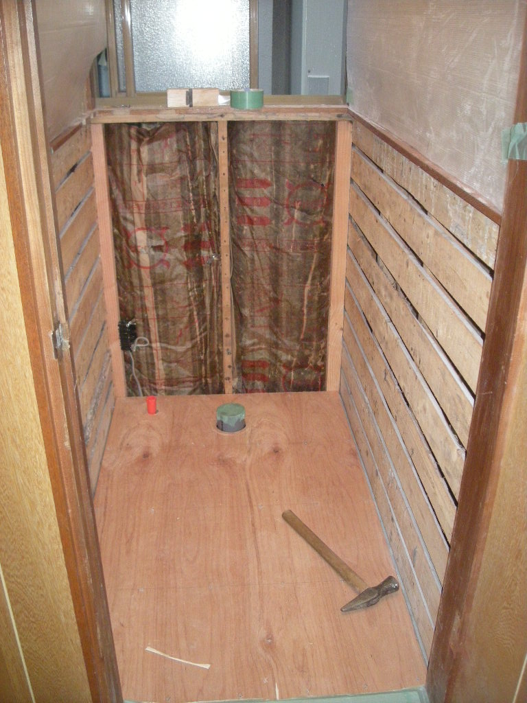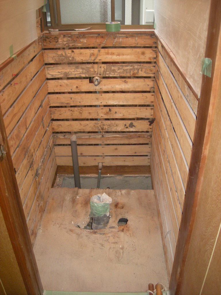 給排水管の移設後、床に新規のコンパネを施工しました!!