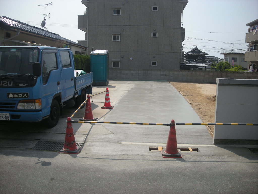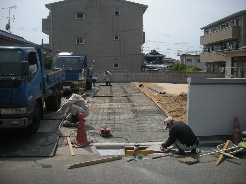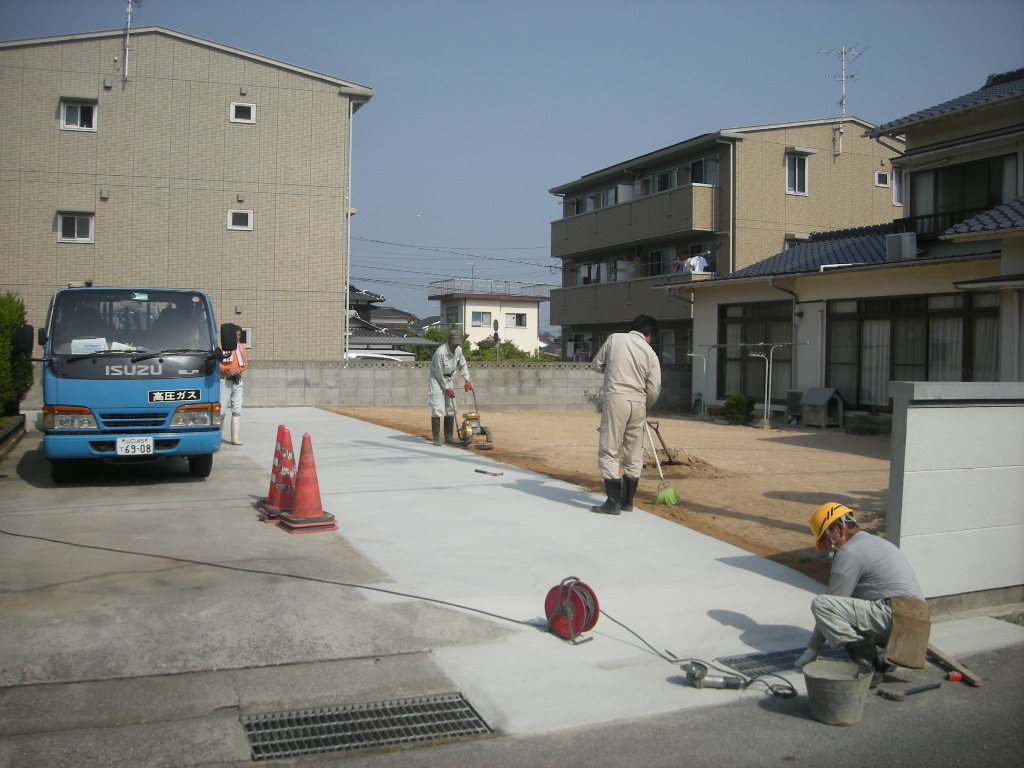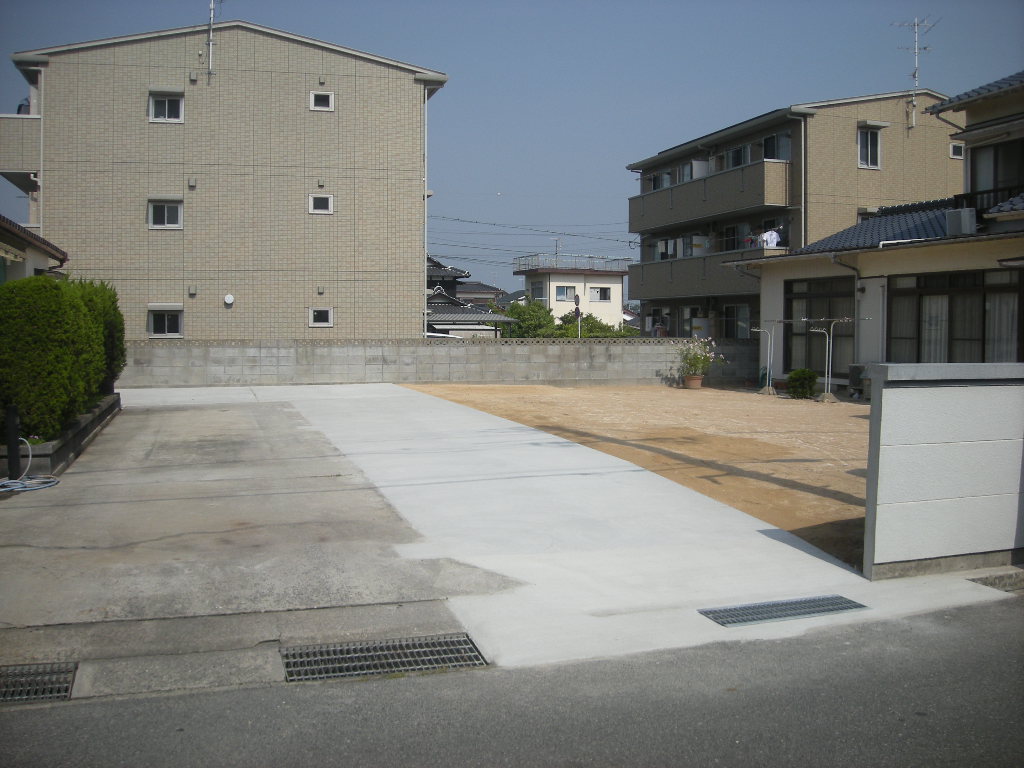 新規駐車場への生コンの打設から仕上げ、完成までを紹介します。