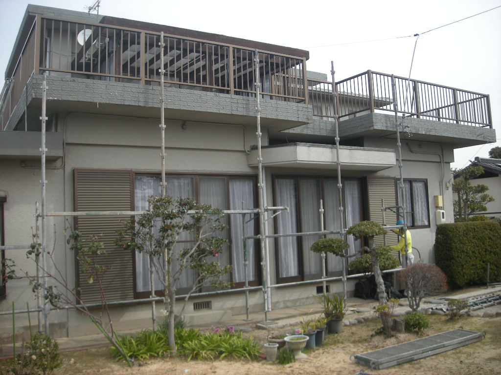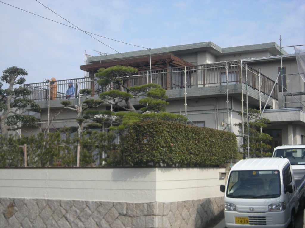 ・外廻りの全面塗装(外壁、雨戸、雨樋、パラペット、その他すべて)。