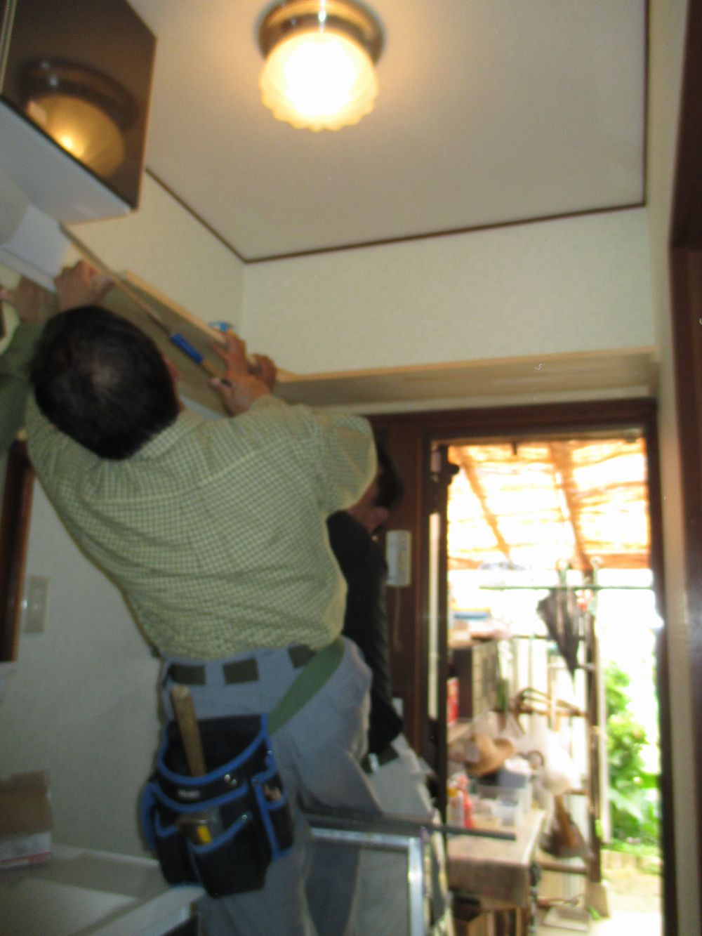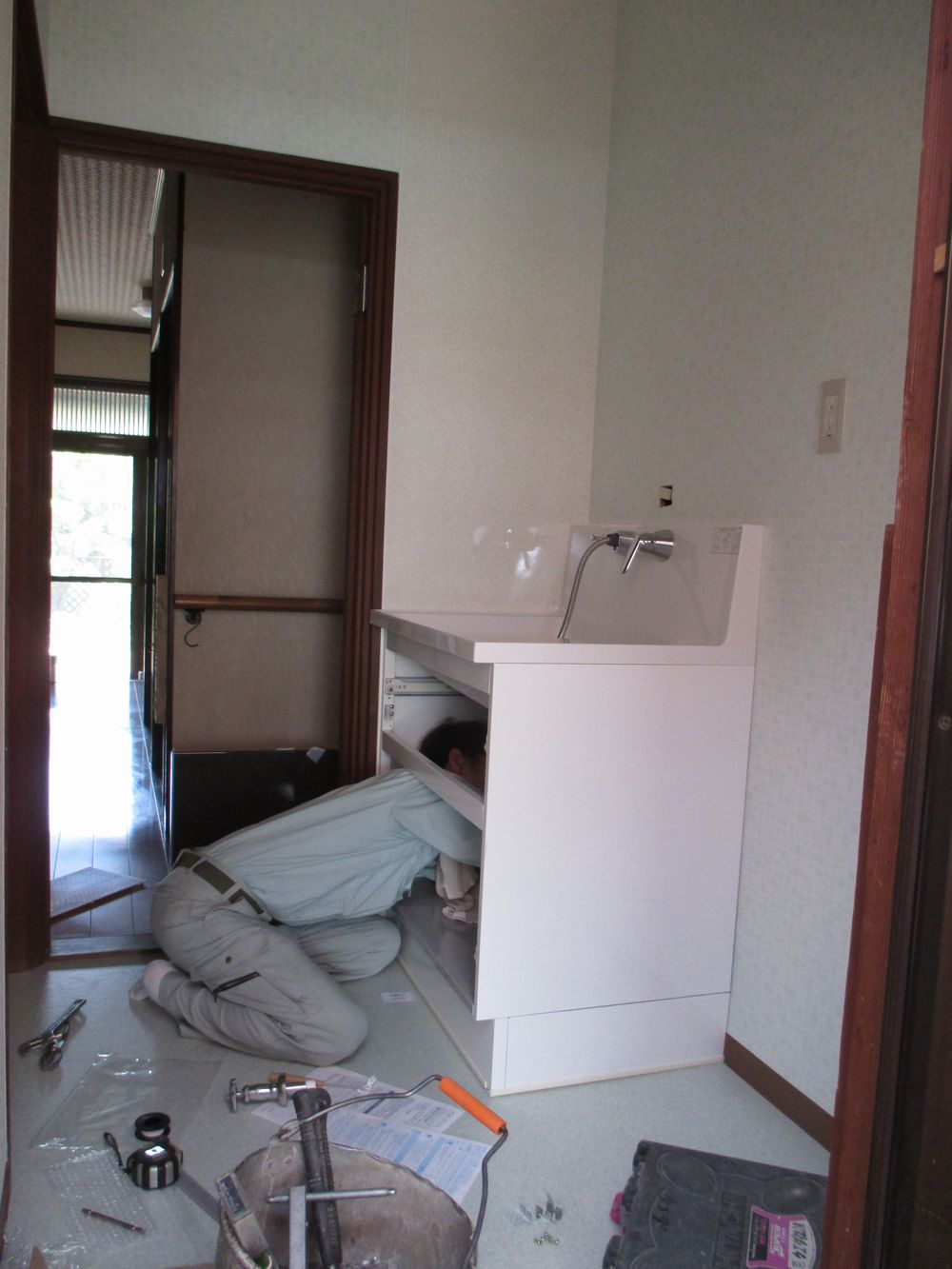 設備屋さんが新規の化粧台を組付けて行きます!!