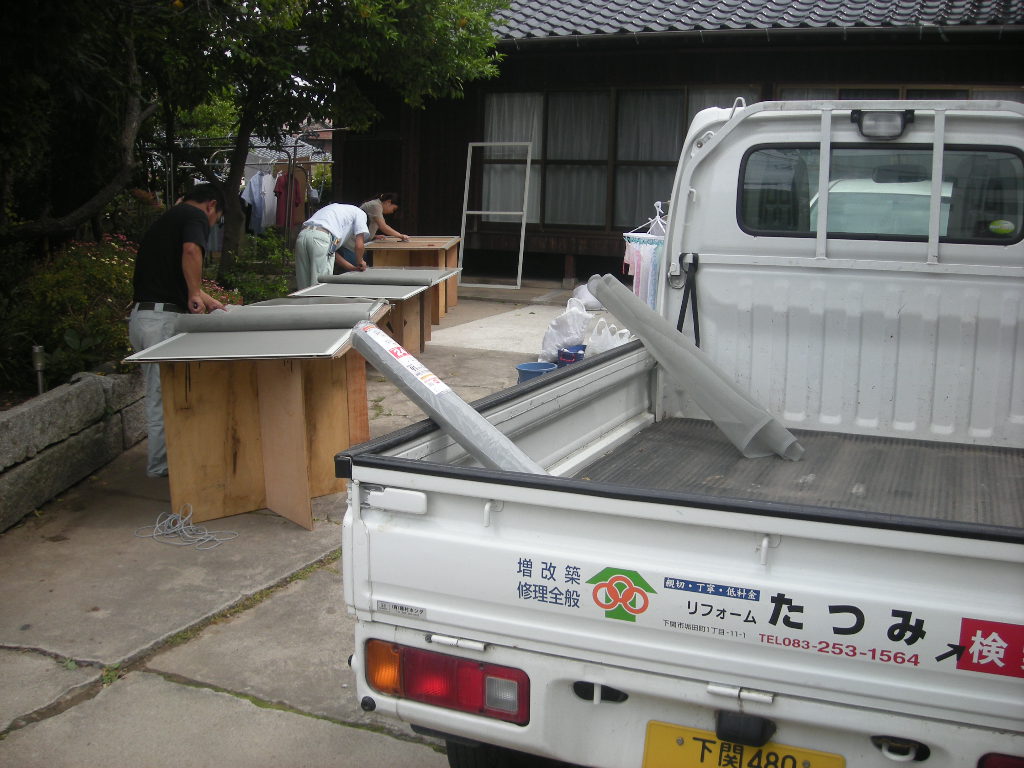 張替え作業の様子(自宅の前の作業場の駐車場で)!!