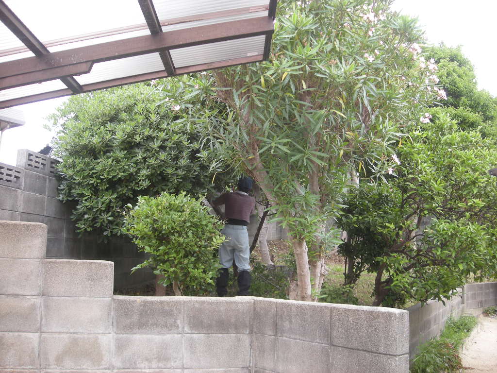 ◎草刈りを終え数日したら、今度は表の庭の植木も剪定してほしいとの電話がありました。