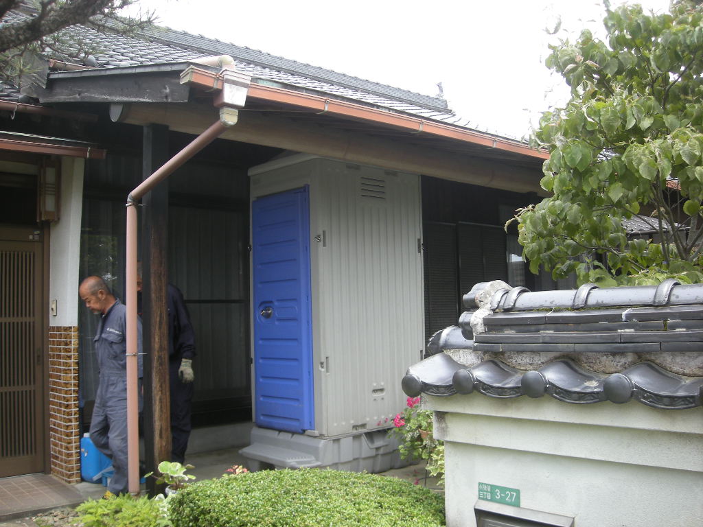 工事に入る前に中のトイレが使用できなくなるため、外に仮設トイレを設置しました!!