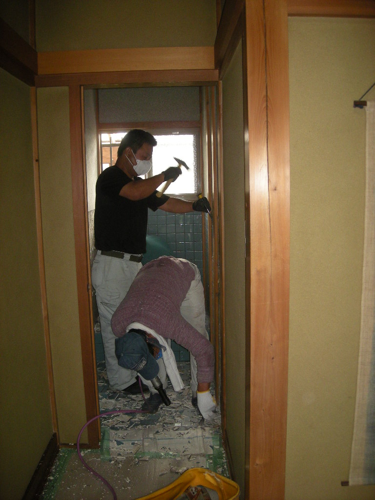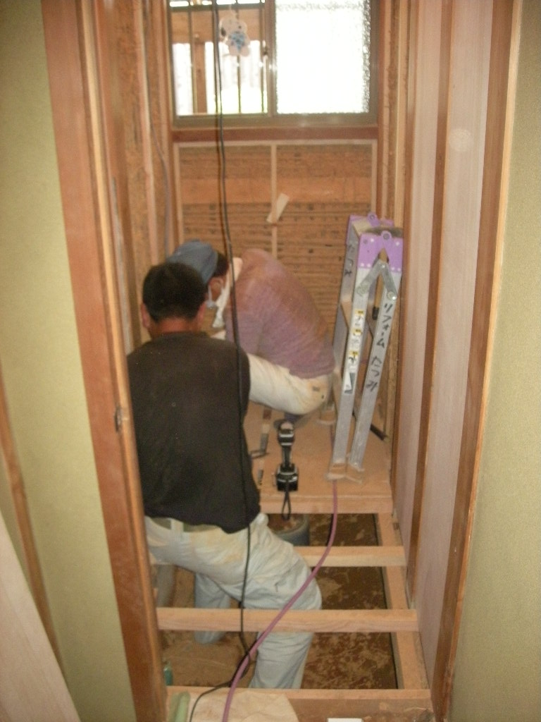 解体、便器の撤去等が終わったら床廻りの下地づくりをします!!