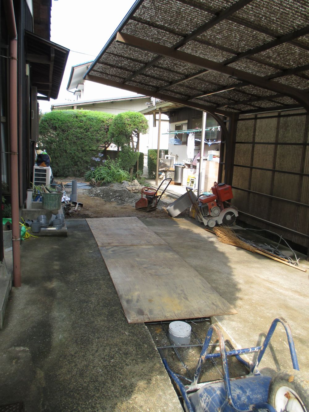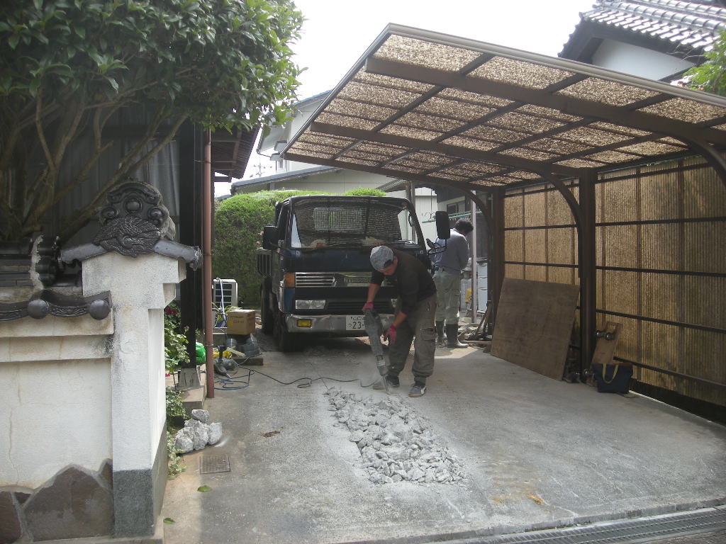 車庫の部分の土間のコンクリートをハツッて行きます!!