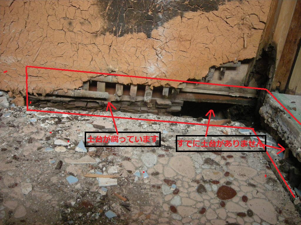 土間廻りを解体撤去後、腐食している土台をすべて撤去しました!!