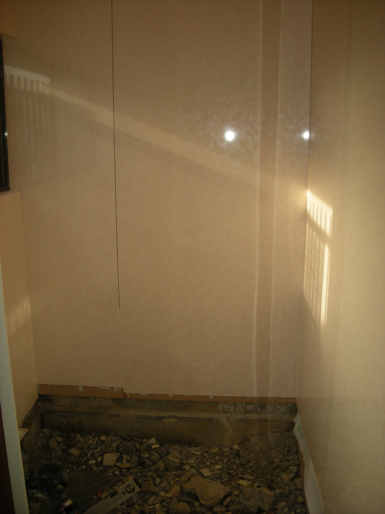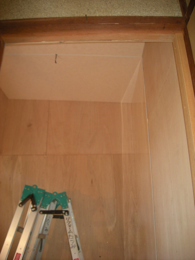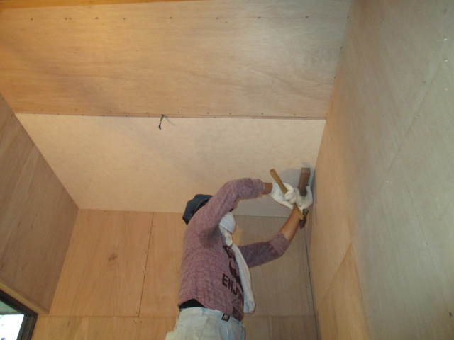 その上に、天井と壁廻りに防水コンパネを施工しました!!