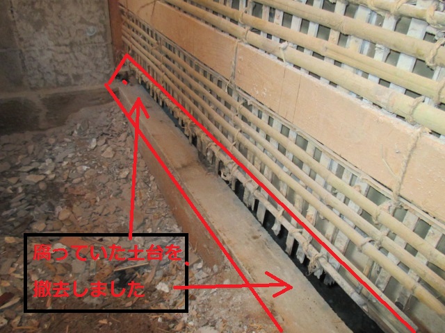 *腐食している土台を撤去して、新規の土台を入れる作業から始めることになりました。