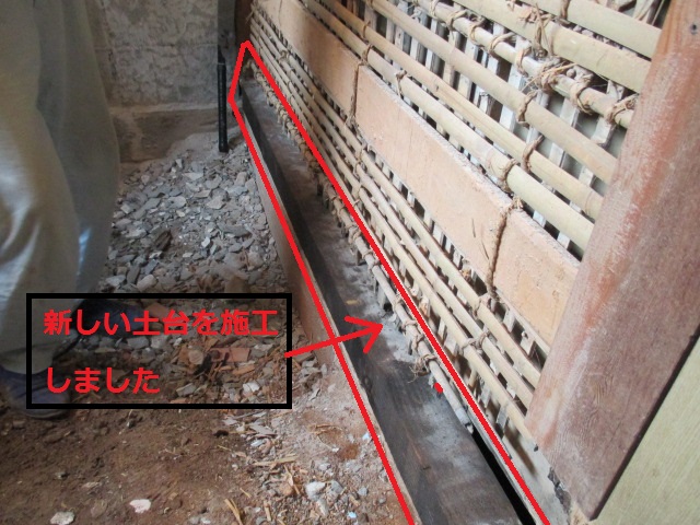 新規の土台を施工し、腐食防止のクレオソートを塗りました!!