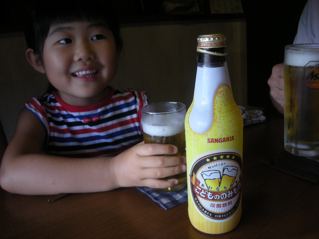 こども用のビールに似た「こどものみもの」だそうです(明ちゃんもうれしそう)!!