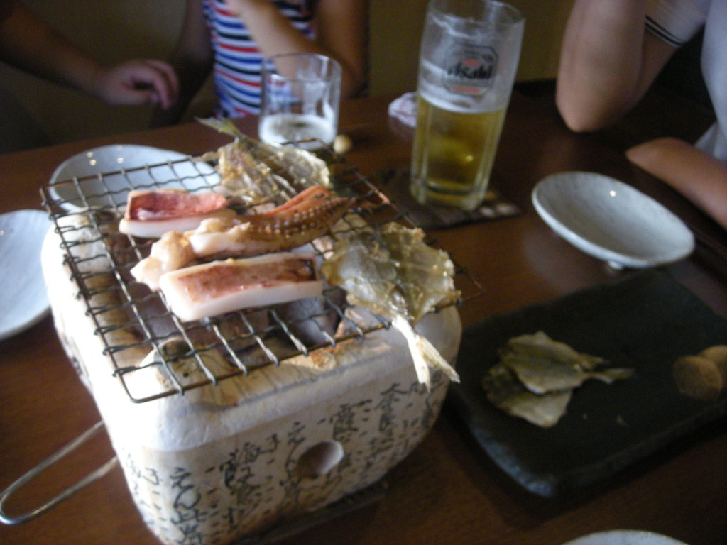 最初に来た、おとうしも炭火で焼くイカと干し魚で、お洒落ですねー!!