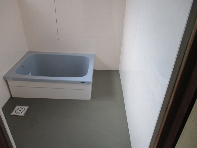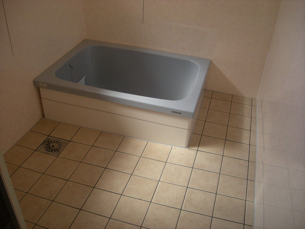 洗い場の土間タイルの施工の完了です!!
