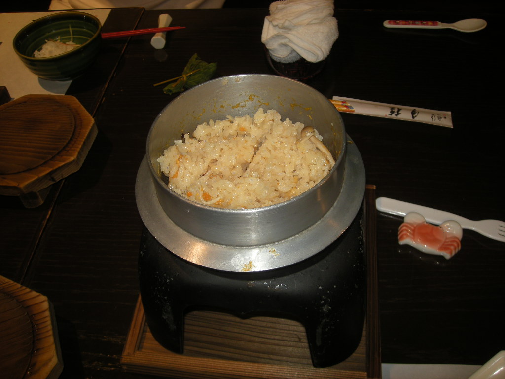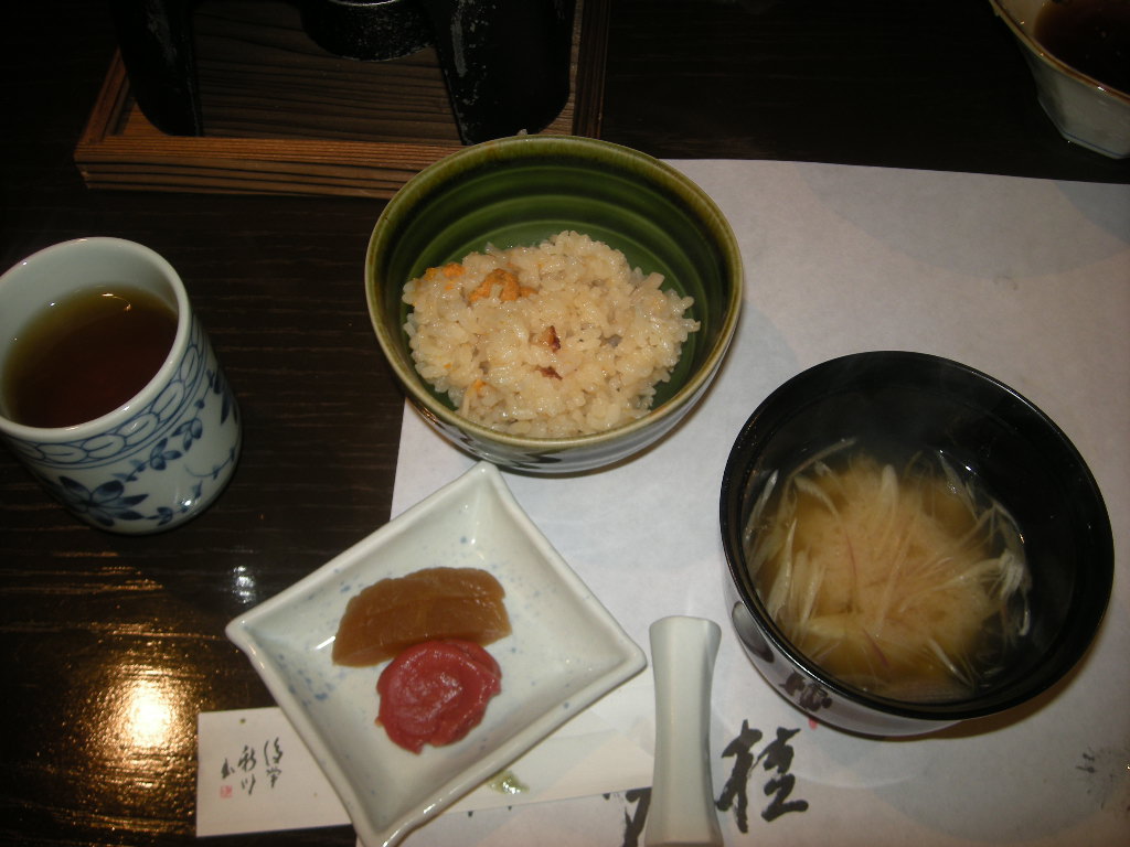 釜飯(私はウニ釜飯を注文しました<やはり目の前で炊き込みます>)!!