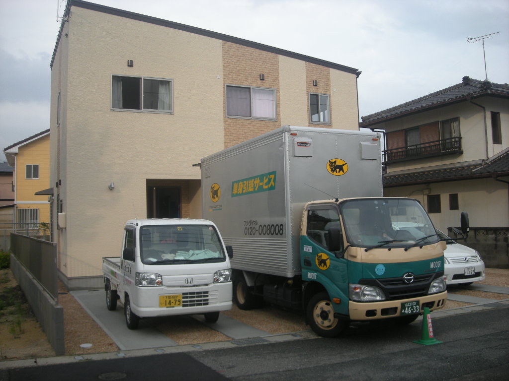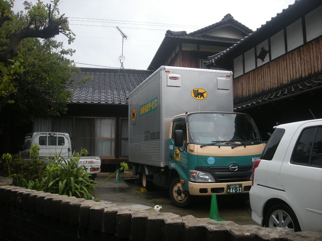 我が家から荷物を運び出します(引っ越しは専門の業者に依頼しました)!!