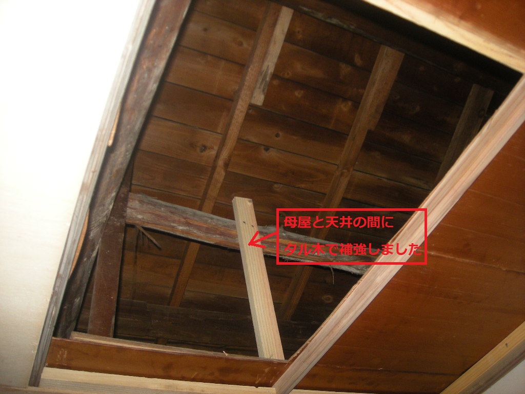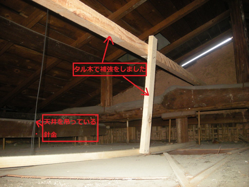 天井を針金で吊っただけと言う状態で弱々しいいので、ご覧の様に補強をしました!!