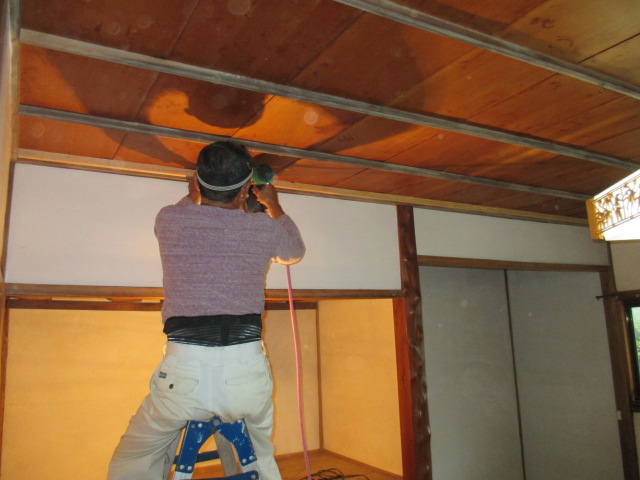 必要になるので当社として勧めたのが既存の天井の、この上からベニヤを施工し、そして和室の