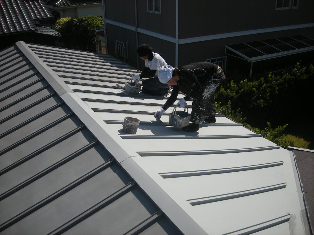 瓦棒部分はケレンをし下地をきれいにした後、錆止め塗装し、中塗り後上塗りをします!!
