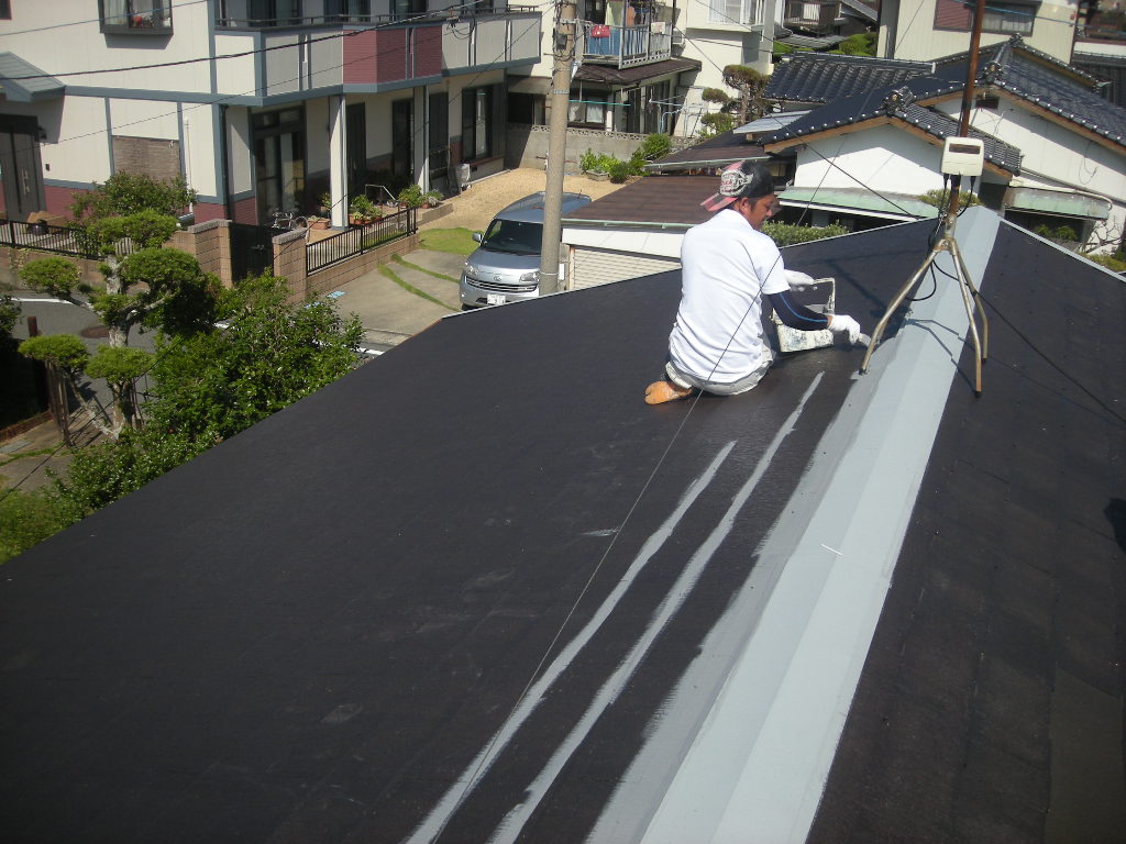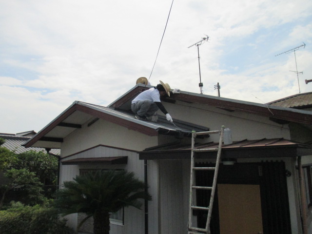 施主さんには良く、この遮熱塗料「ガイナ」の説明をし、神戸にいる息子さんとも連絡を取り承諾を頂いた上で、工事を行いました。