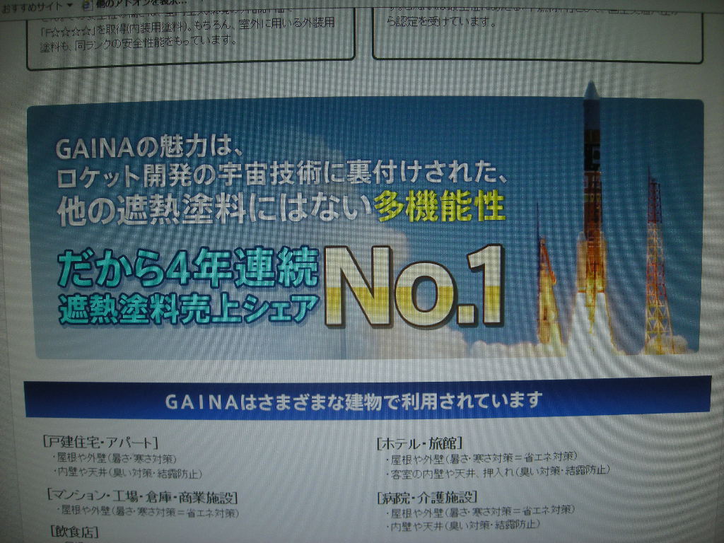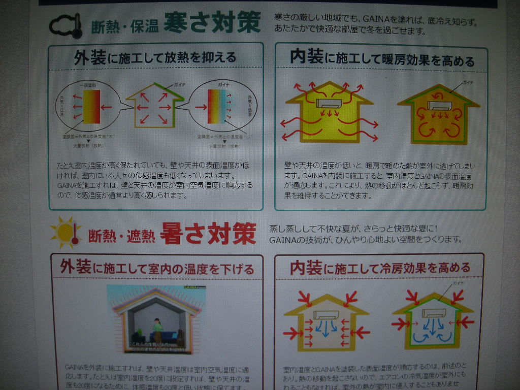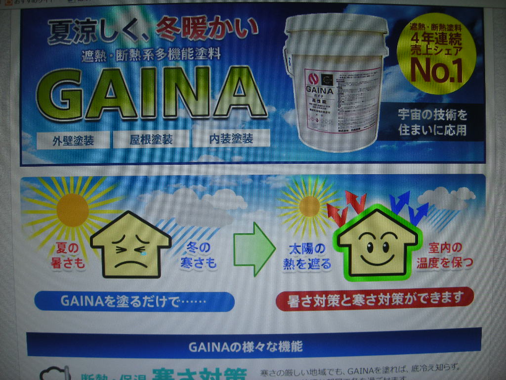 遮熱塗料にも色々ランクがあるのですが、今回は若干高いのですが、確実に効果が期待できると言われている塗料で、宇宙ロケットの開発中に生まれたと言う最高級の遮熱塗料の「ガイナ」を塗装することにしました。